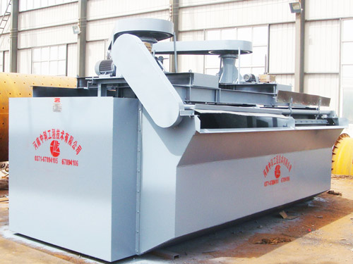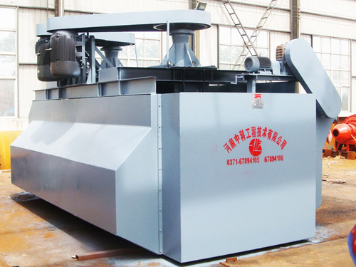 При приводе клиновым ремнем двигателя крыльчатка флотомашины начинает вращаться, за счет центробежной силы образуется отрицательное давление, и с одной стороны вдыхается достаточное количество воздуха, смешиваясь с пульпой, с другой стороны, смешанные пульпы попадают в зону минерализации, истончая пузырьки, а минералы прилипают к пузырькам и образуют пузырьки минерализации. Регулируя высоту доски и контролируя уровень жидкости, эти пузырьки удаляются скребком.